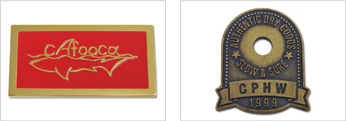 どんなロゴプレートを、自社商品・ブランド品にどのように取り付けるかによって、選択すべき金属素材やロゴプレートの仕様が変わってきます。まずは、金属素材と取り扱い製品一覧より、製作されたいものに近い製品のイメージをご検討ください。