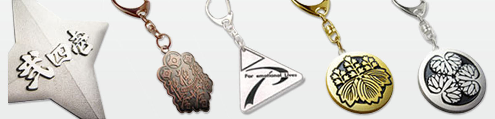 さまざまなタイプの「メタルキーホルダー」を製作しております。製作をご検討の際は、お気軽にお問合せください。